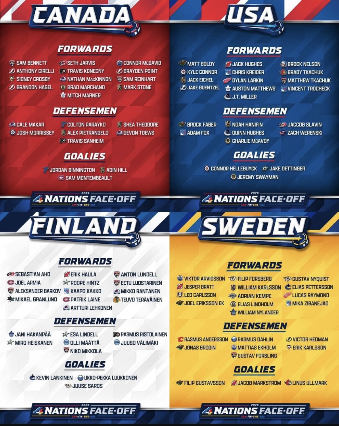Canada has a stacked roster! The 1st power play is rumored to be Crosby, McDavid, McKinnon, Reinhart, Makar. That’s a scary lineup.
