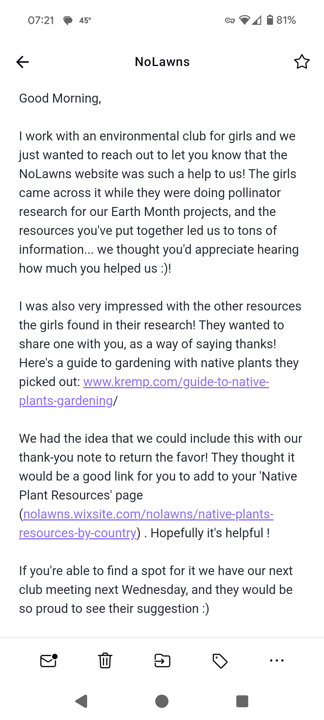 Your community inspired me to start converting my lawn into native ground cover! It’s an ongoing project but I never would have started without you!
