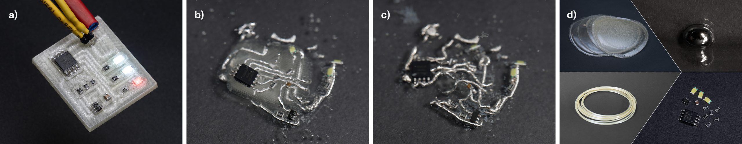 This is not just one of those ivory tower papers with their actual applications far away in time and eventually ending up in some obscure industrial process never heard of again in lay circles; this could have an immediate impact on the maker culture and makerspaces right now and in the near future. The preprint describes the process in a very understandable, digestible manner and provides actual implementation examples, as well as detailed recipes for all of the compounds. If you are even remotely interested in the subject matter, I’d recommend you to try it out for yourself. The “ingredients” are all easily obtainable and handleable. Yes, gallium and indium might be a bit expensive, but it is worth it imo. They literally used consumer kitchen equipment for some of the steps, to demonstrate how this is feasible for tinkerers, makerspaces and prototypes. No expensive machinery required (except for an FFF 3d-printer, of course).