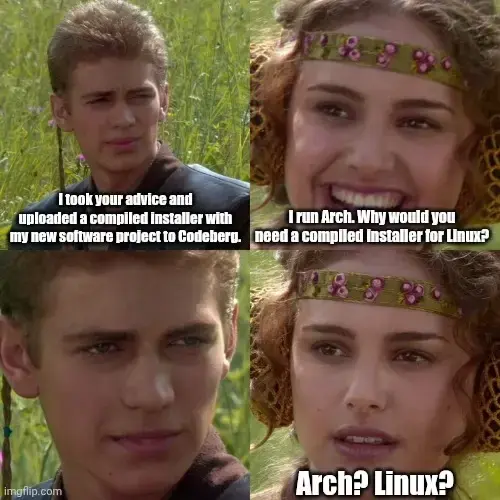 • Everybody uses Arch btw, can’t quit Vim, <loves/tolerates/hates> systemd, and wants to interject for a moment. You can stop now.
