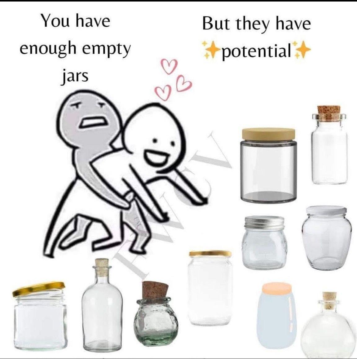 “Enough empty jars” 🤔 what does that even mean? These words make no sense combined in this order. My brain can’t parse it.
