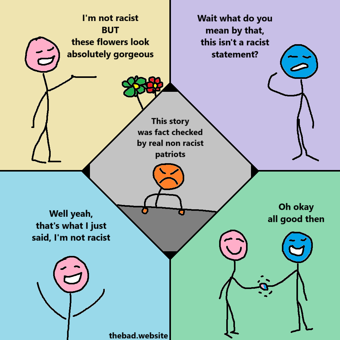[blue, confused] Whait what do you mean by that, this isn’t a racist statement?
