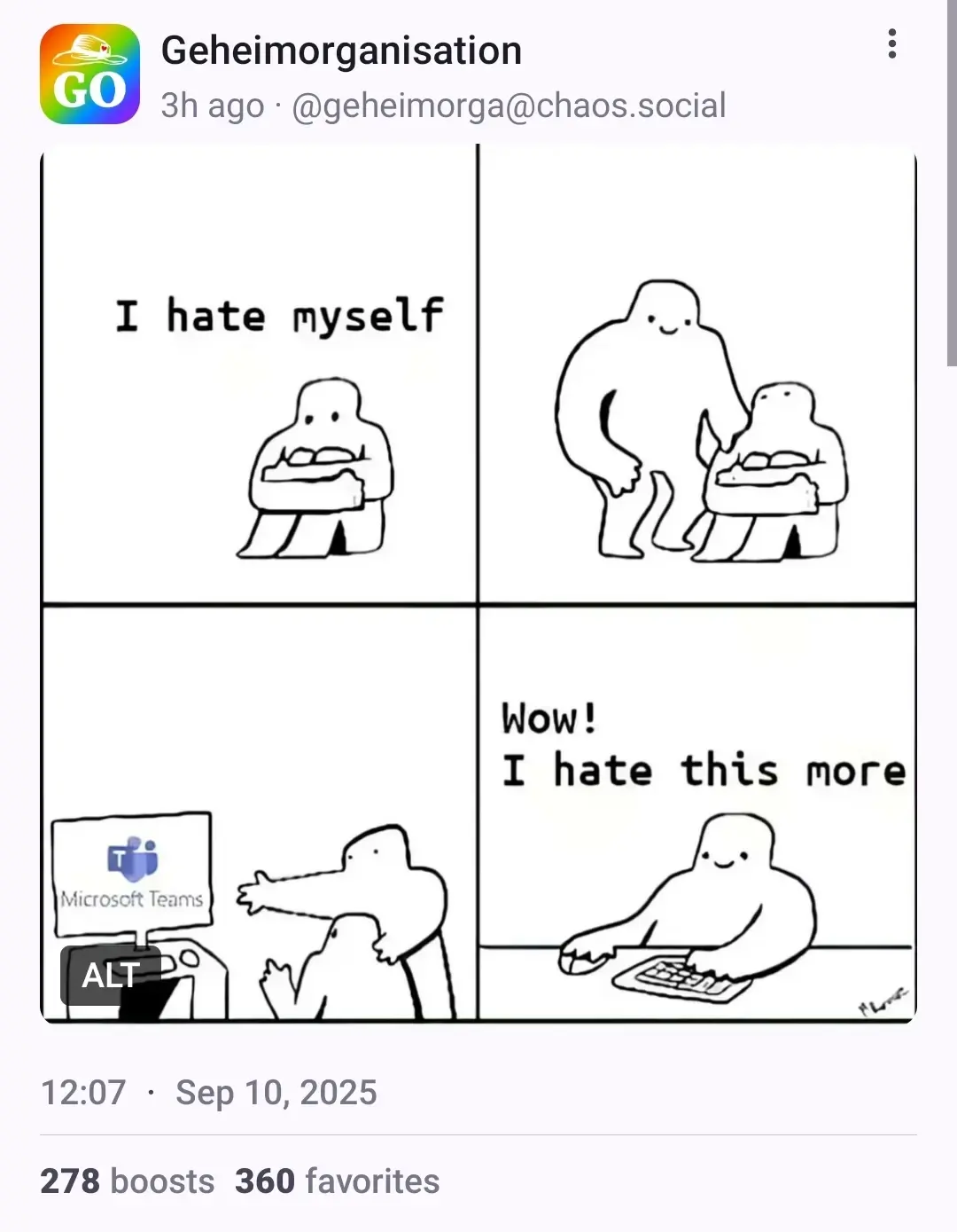 There isn’t a single bad thing about MS Teams, it’s a bunch of kinda bad things that together make the product terrible. We should demand better of our software products but all leverage has been given to the people who already control these things so we’re just screwed from getting actual good software made.