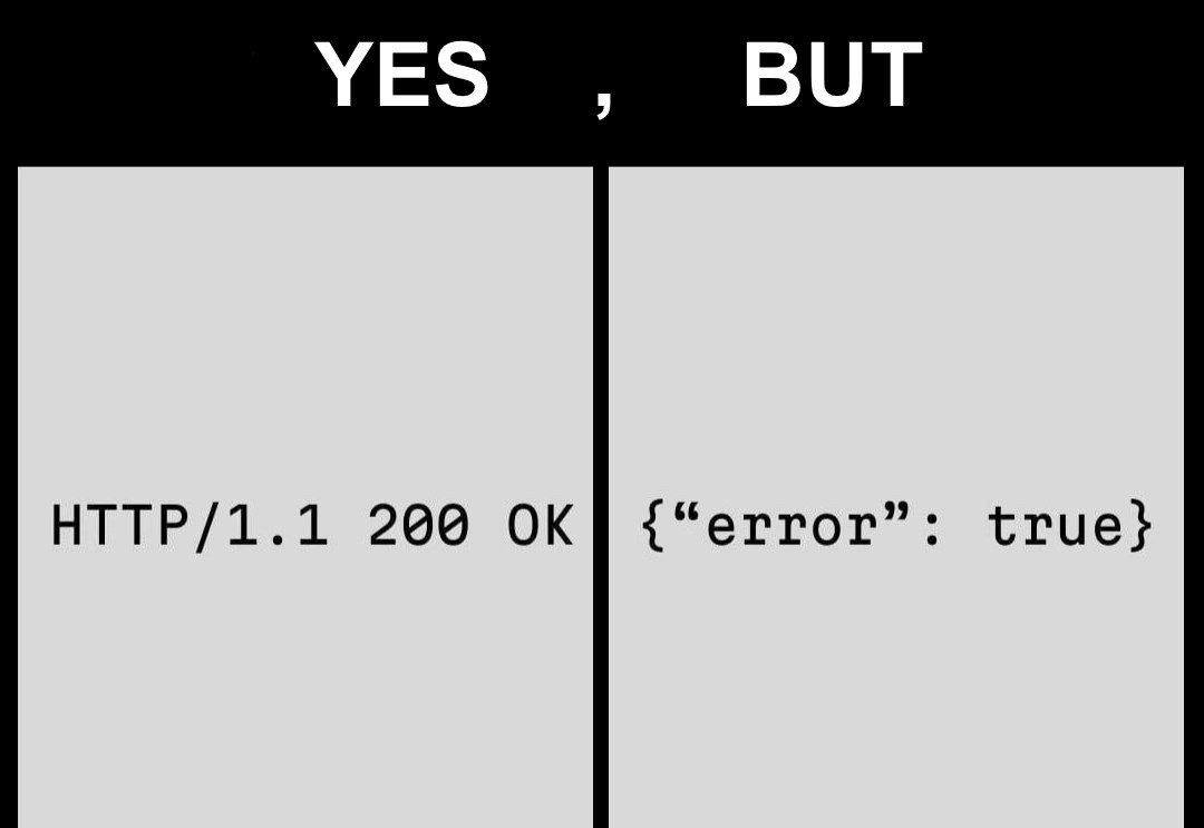 And on the other side of this are JS devs that check for neither error response codes or error messages, and write an error into their own data as if it’s the result they were after.