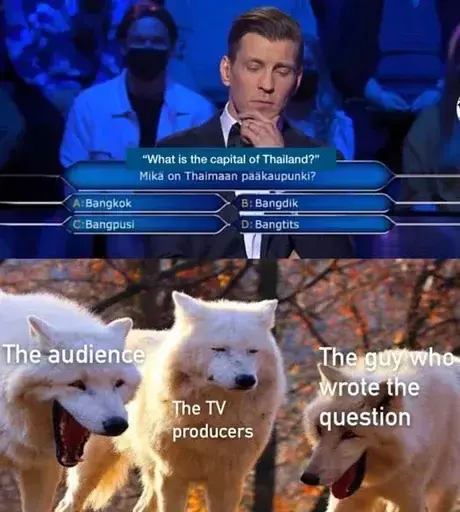 It’s a real question. This is from the Finnish edition of who wants to be a millionaire.
