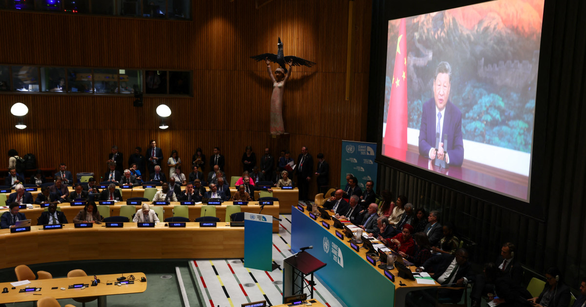 Chinese President Xi Jinping said that by 2035 his country would cut its greenhouse gas emissions by 7% to 10% from their peak, a day after President Donald Trump called climate change a “con job.”