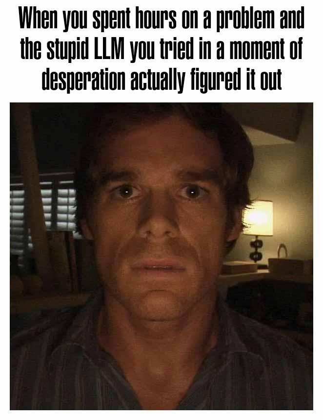 Literally never had this happen. Every time I have caved after exhausting all other options the LLM has just made it worse. I never go back anymore.