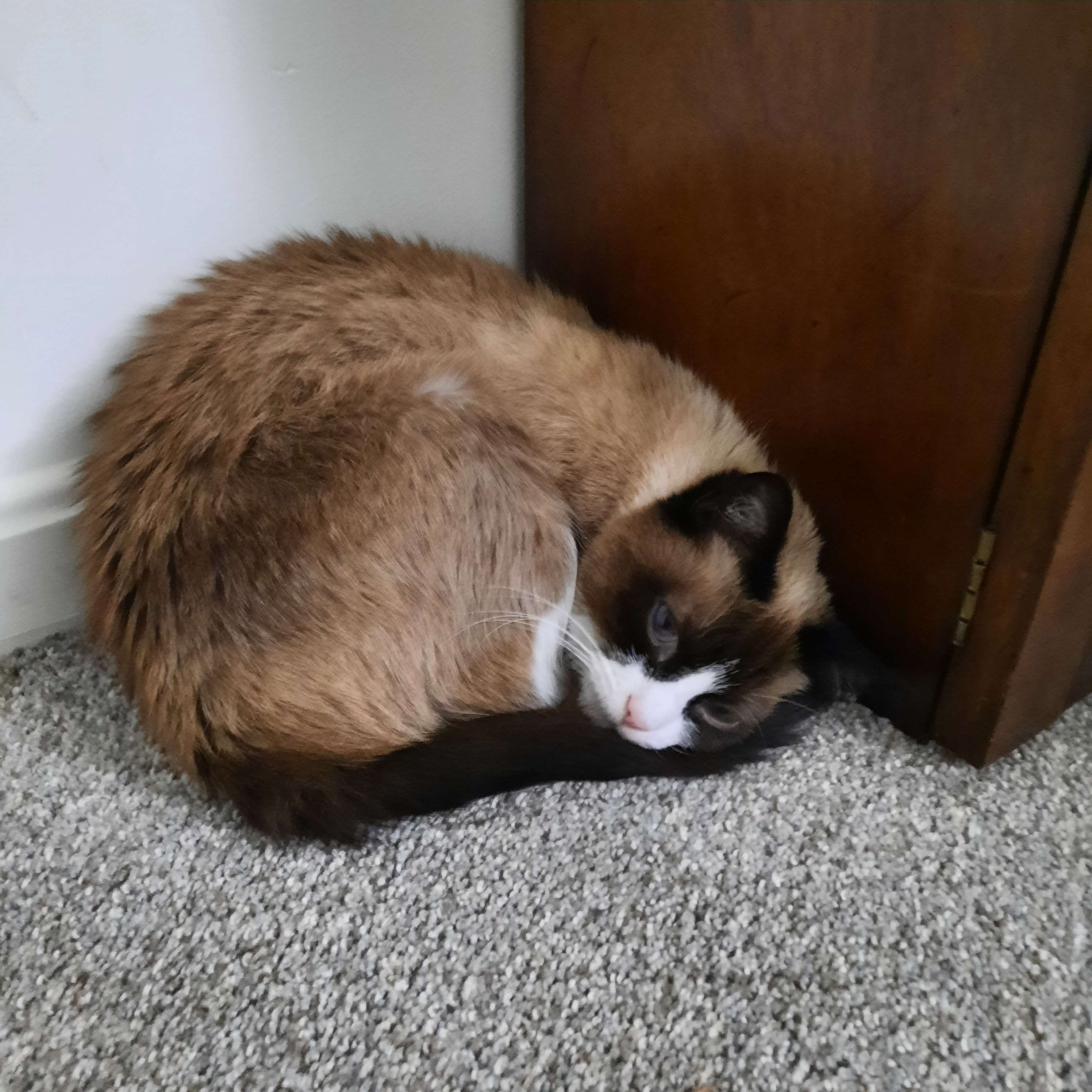 Eh, just comes across to me like it was sleeping cozily moments before the picture was taken.