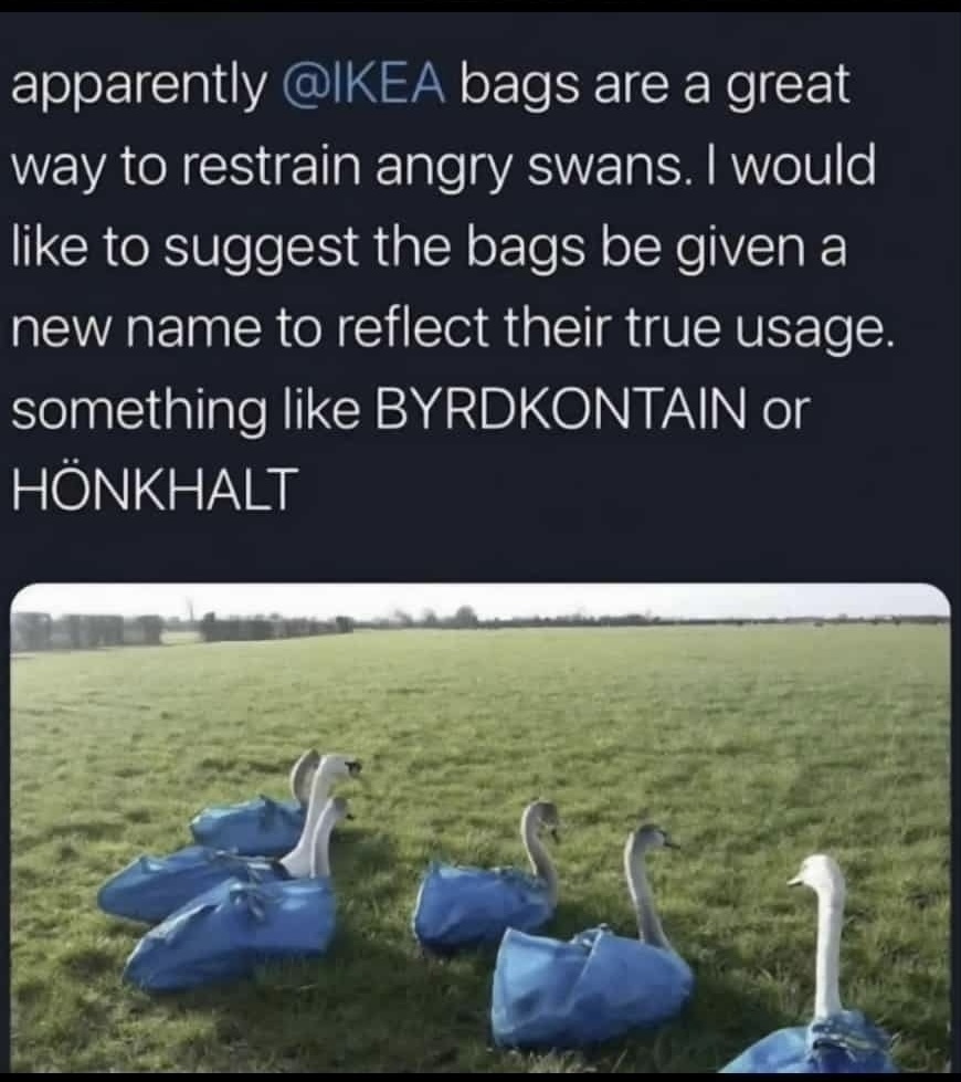 I don’t think there’s a practical way to actually put swans in ikea bags.