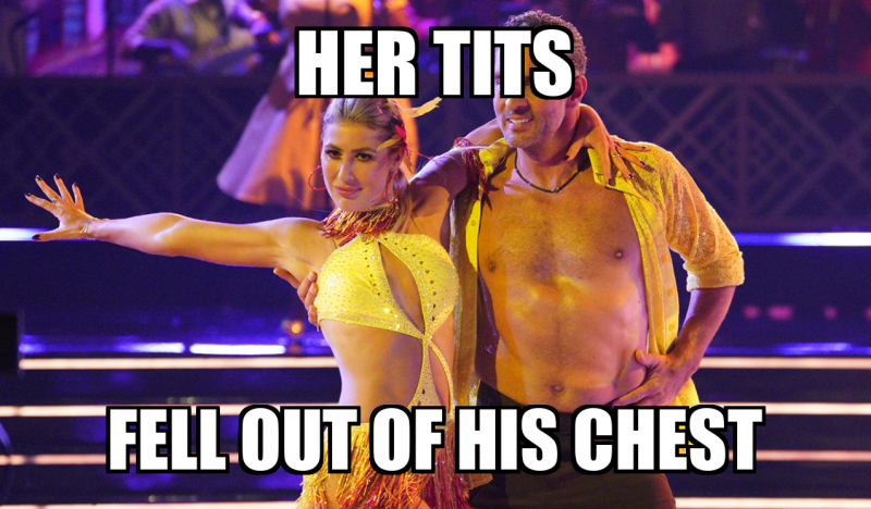 “Her tits fell out of his chest”