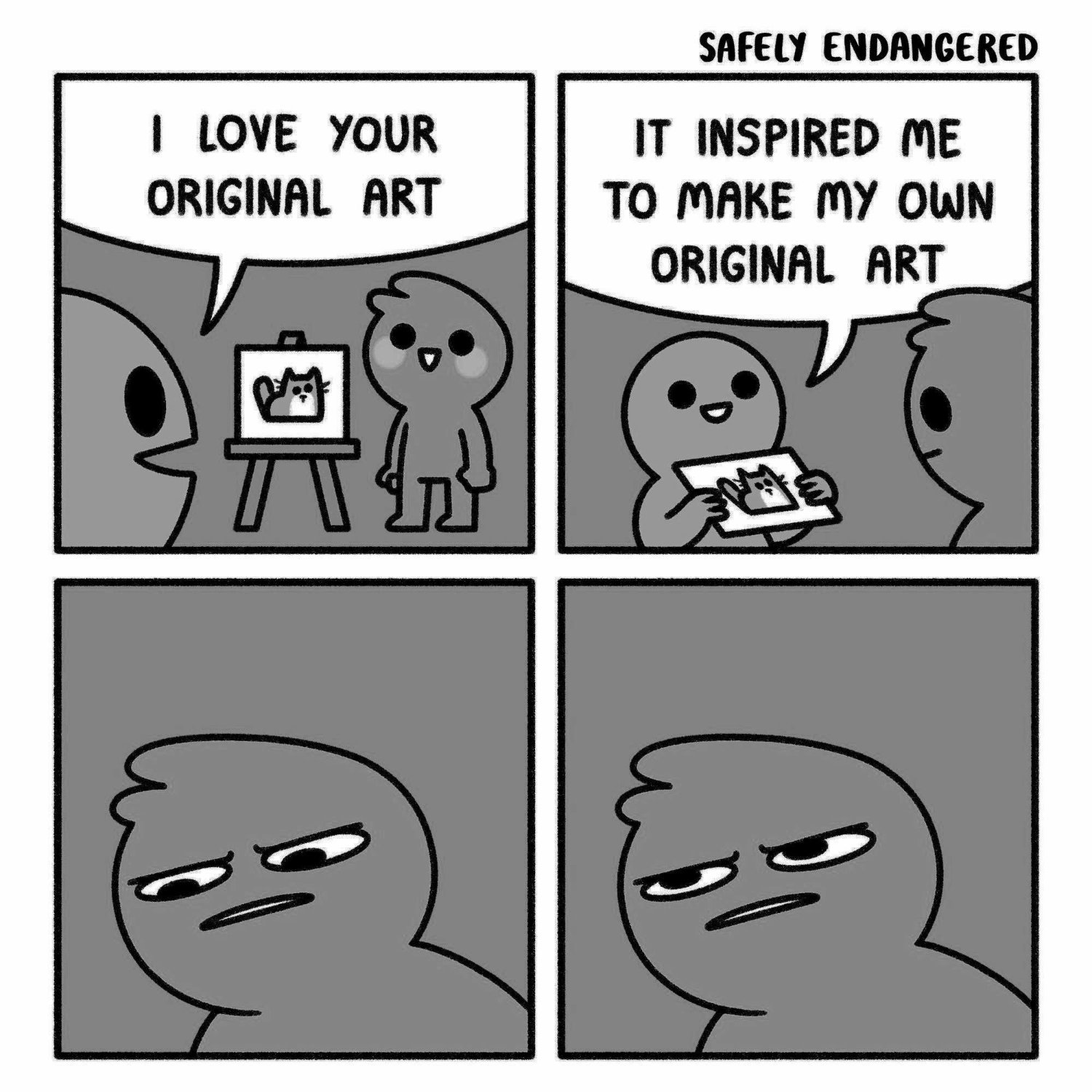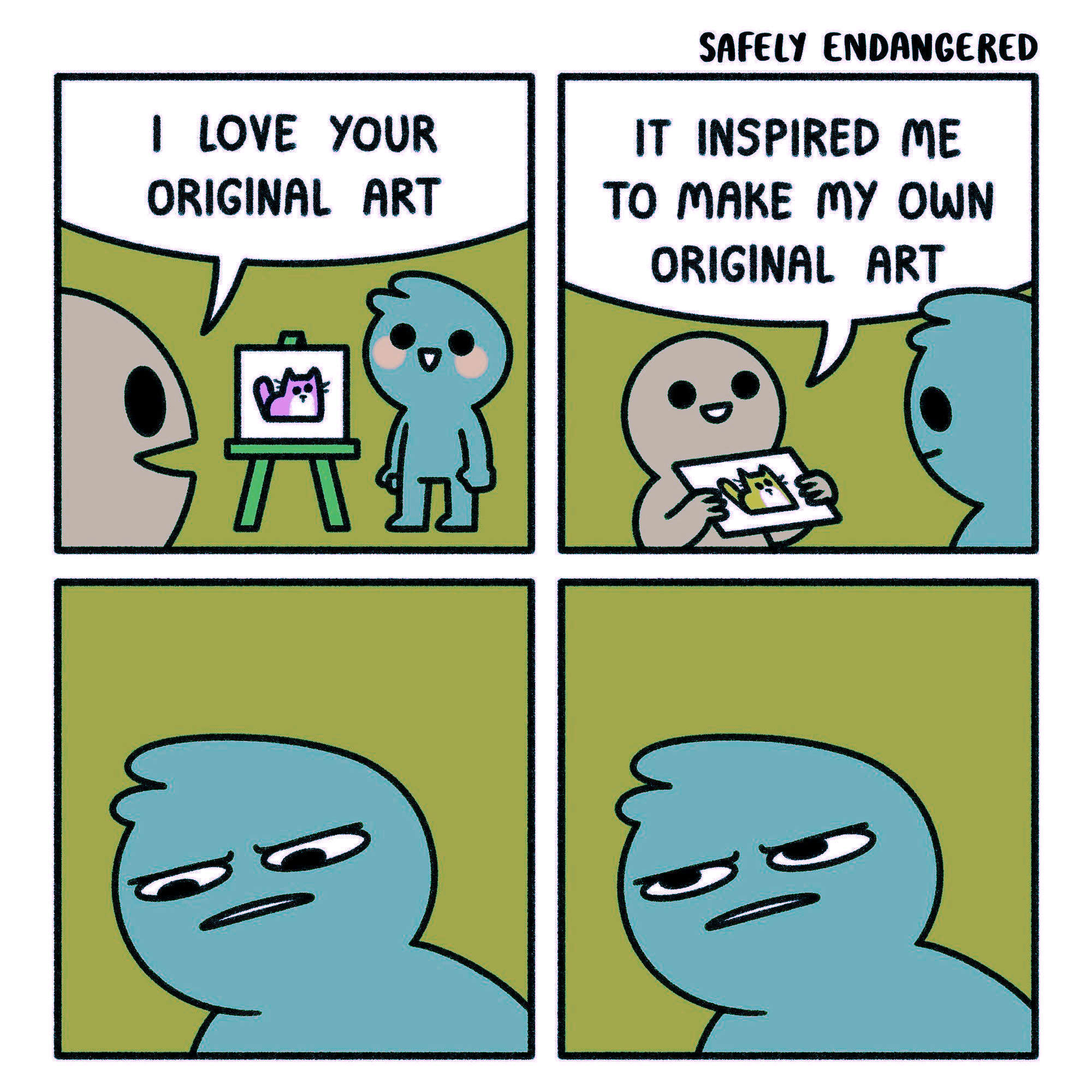 New Artist: “You’ve inspired me to learn your artistic style and mimic your techniques. Now I’m going to tell my friends and they’re going to start doing it too. And before long, there will be an entire artistic tradition based on your original works.”