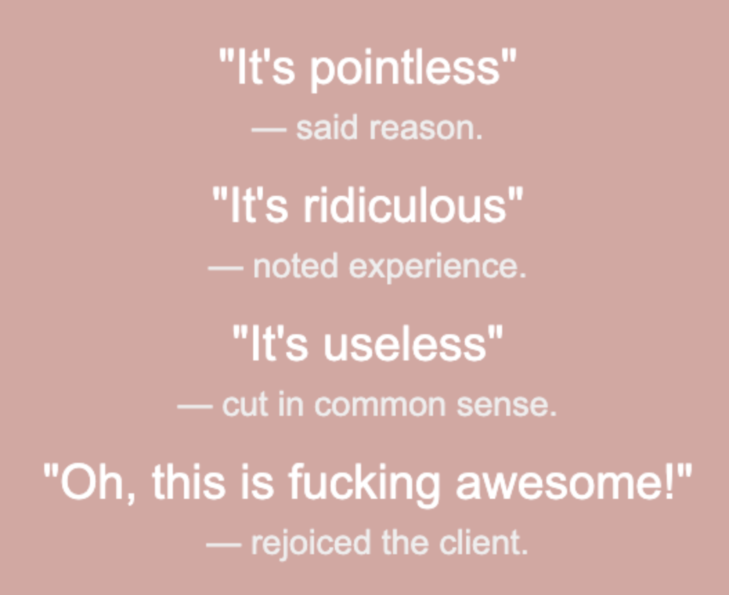 arrow-up176arrow-down1imageCommon sense vs the clientlemmy.ml☆ Yσɠƚԋσʂ ☆@lemmy.ml to Programmer Humor@lemmy.mlEnglish · 13 days agomessage-square5fedilinkcross-posted to: programmer_humor@programming.dev