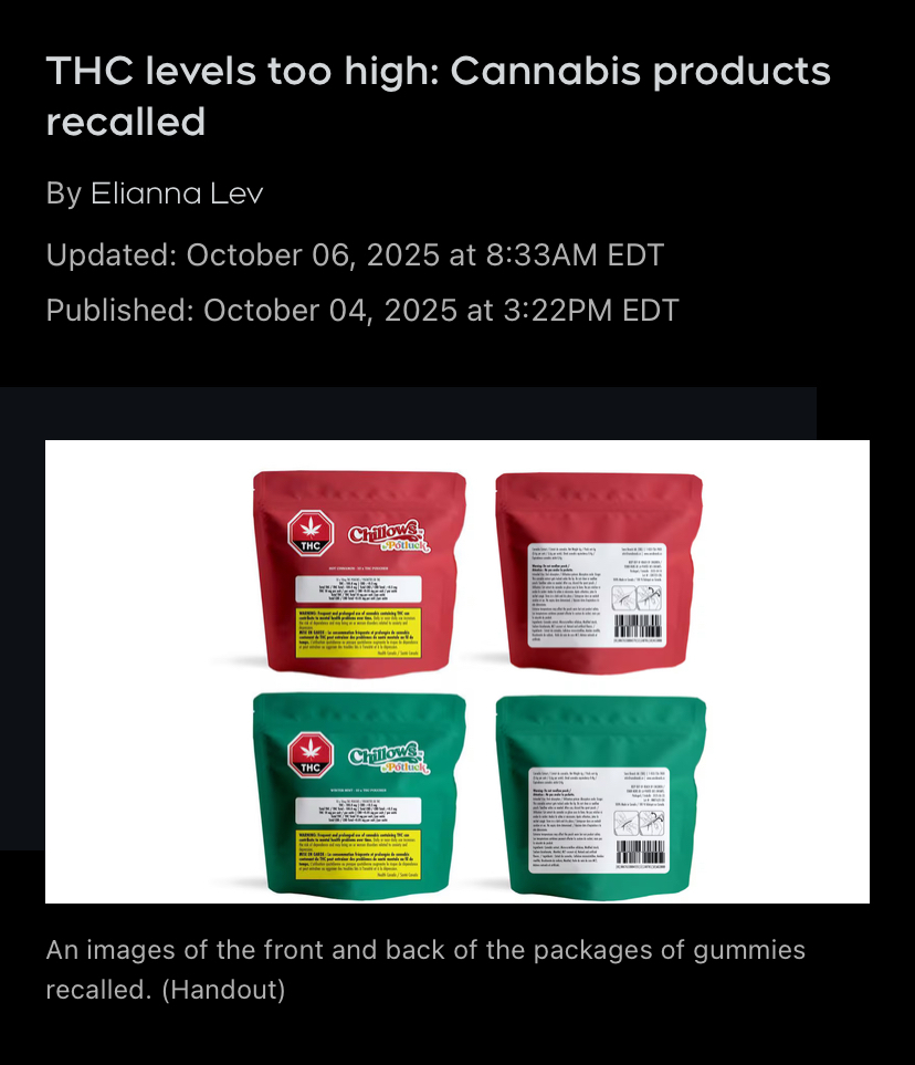 A canabis recall for too much THC sounds like a brilliant marketing strategy