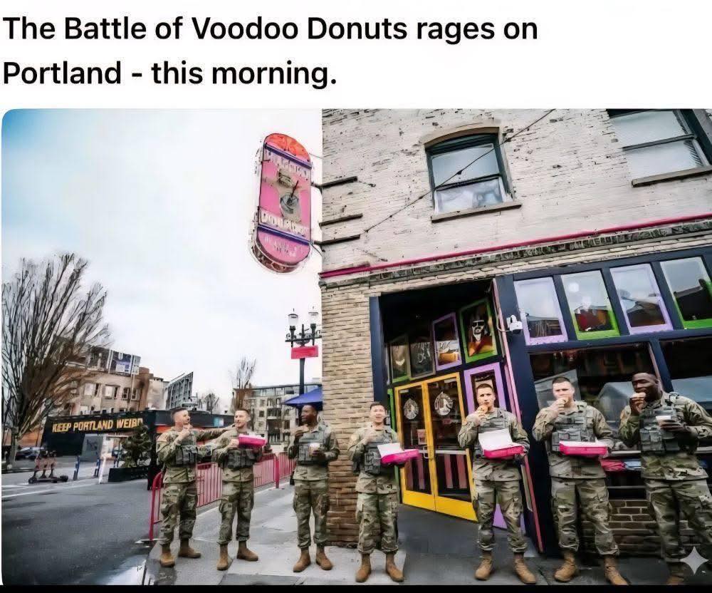 The Keep Portland Weird is an indicator that it isn’t straight aigen. It’s possibly doctored, but it’s hard to tell when the image is about as deep fried as the donuts.