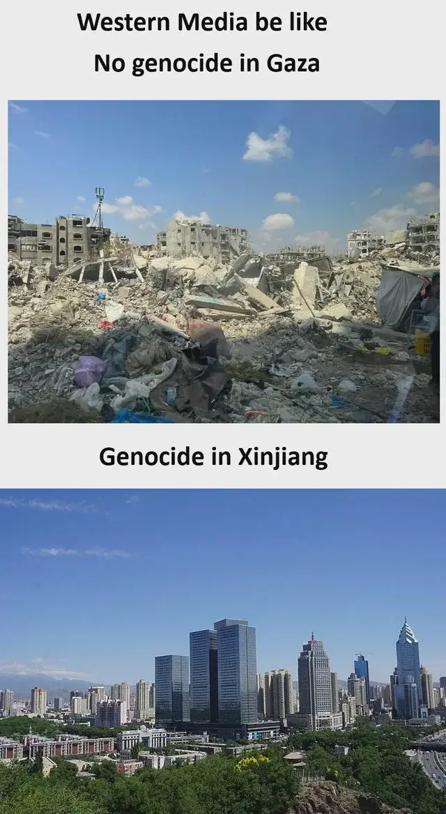 And regarding doubts on the claim on Xinjiang pushed by your govt, it looks like them manufacturing consent against their enemies rather than caring about the issue, because they are actively supporting genocide in Gaza.