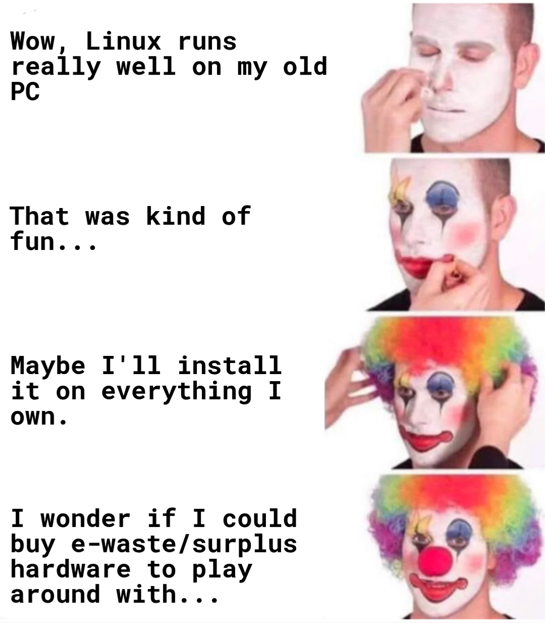 that’s like stage 7-8, after an extremely high electric bill. Also about that time you consider moving to a colder climate so the electronics can just heat your house.