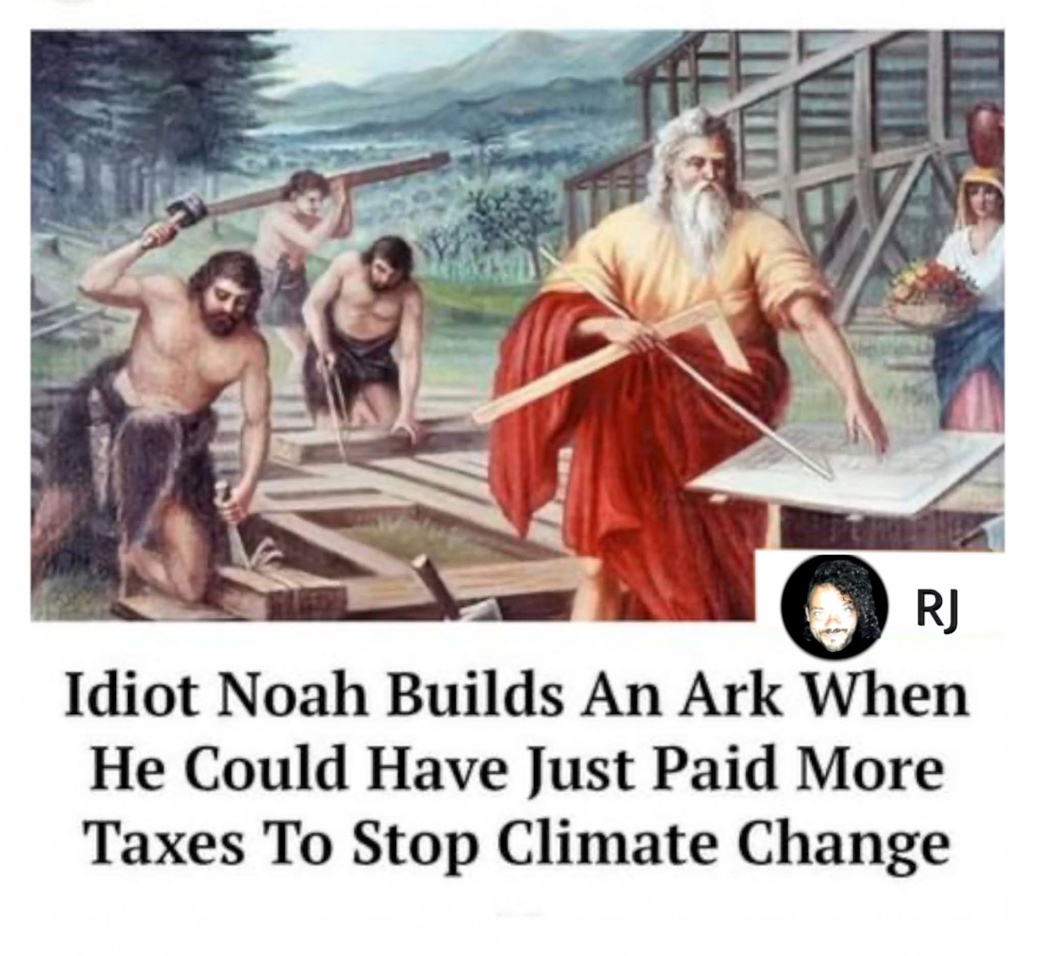 him,Him, burning the money as a sacrifice to Him could have changed His mind about sending the Flood. Only if everyone had joined in, of course. But I guess Noah was better at carpentry than persuasion.