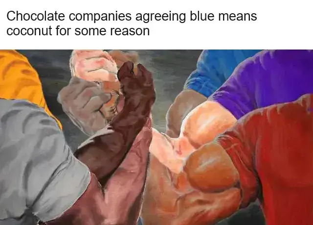 minus-squaretomiant@piefed.sociallinkfedilinkEnglisharrow-up1·2 days agoCoconuts grow in the ocean? It’s blue because coconut = tropical = sandy beaches and blue water, which evokes positive emotions and pictures of paradise in your mind, which makes you more likely to buy [PRODUCT]