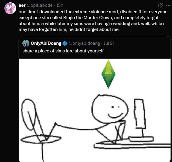 As a rimworld player I fear sims players. Rimworld has a certain degree of violence inherent to it, it’s part of the game. The Sims though? Particularly unmodified Sims? It inspires creativity. Horrifying, horrifing, creativity.