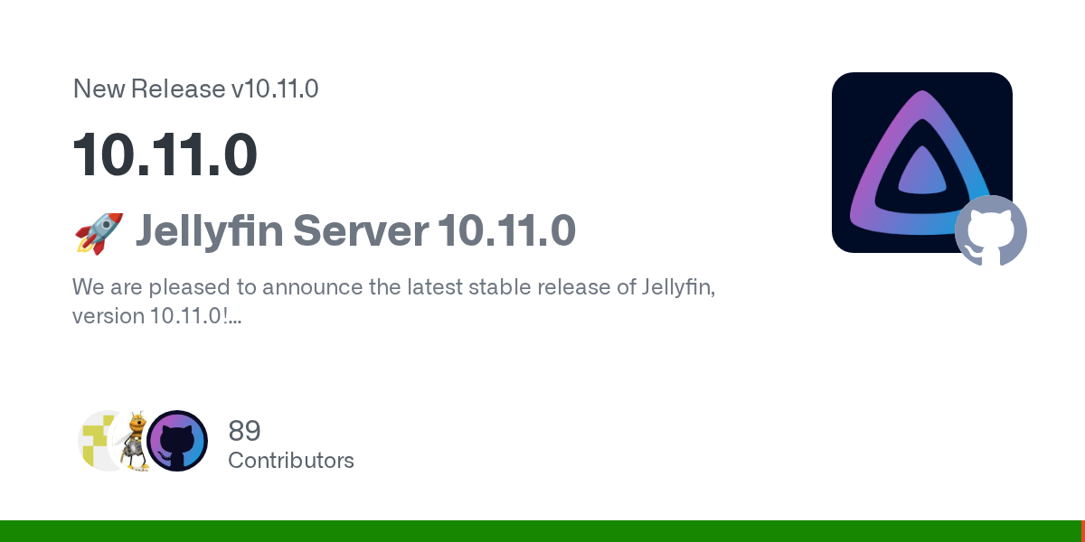 The hard working Dev team have just hit deploy on the the latest stable release of Jellyfin, version 10.11.0!