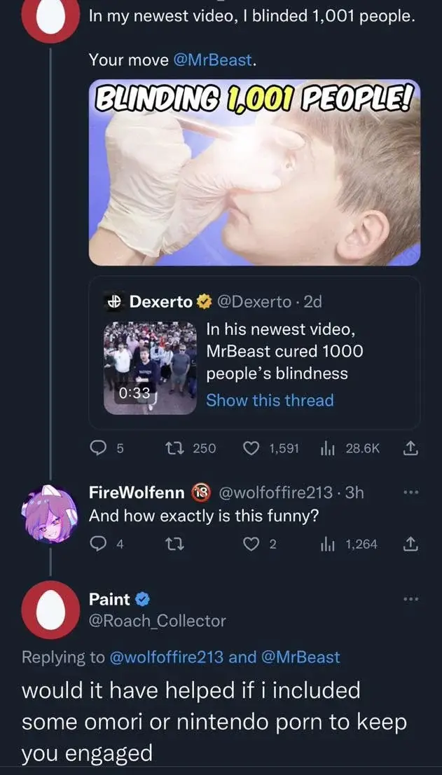 Yeah, the gooner weeb likes the weeb game with the suicidal children, so complaining about a blinding joke is a bit petty