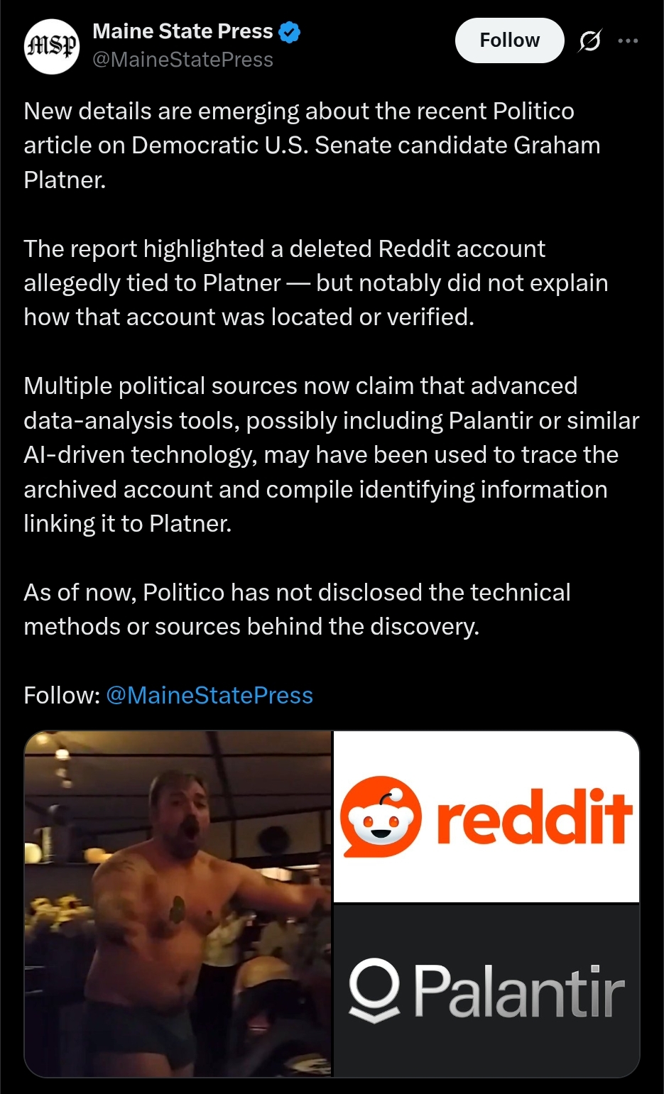 Now, due to the harvesting of this data for AI, anything that’s ever been recorded (video footage, social media posts, etc) and used as training data can be correlated much more easily, long after it occurred, and without needing to be law enforcement with a warrant.