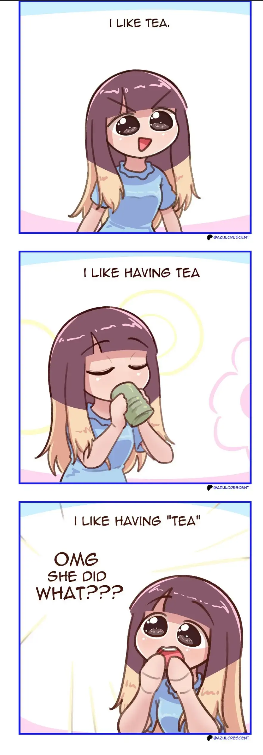 Azul Crescent’s silly scribbles I’ll never stop being amused at the idea that “tea” is also means “gossip.”
