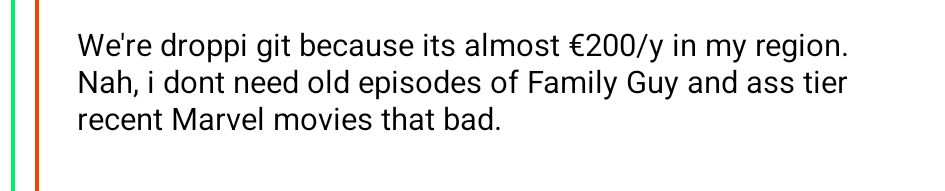 it kinda looks like they just mistyped “dropping it” and they’re actually talking about some streaming service like Disney+