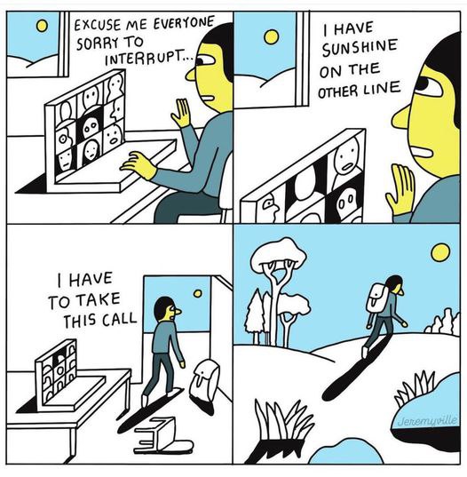 I enjoy the faces on the laptop. It’s like a very modern art piece showing the horrors of remote work.
