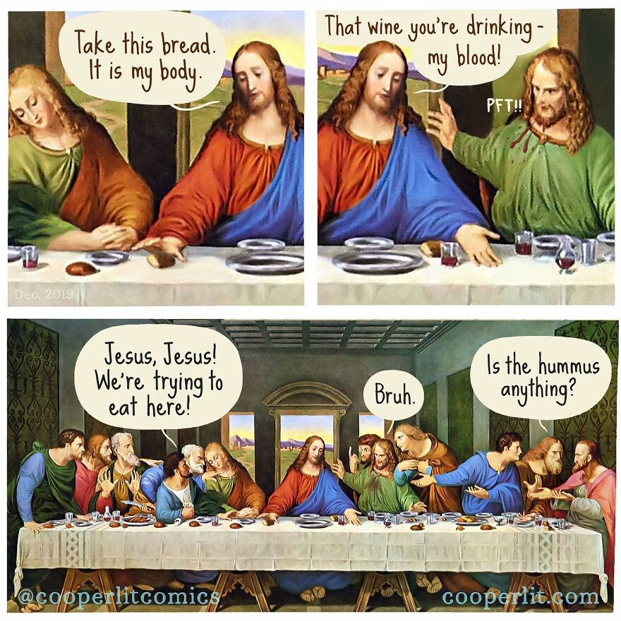 Fun fact some Christians believe the bread and wine literally turn to blood and flesh when you eat them. Like miraculously and in the most literal sense transform. I think there was some pretty big schisms/fights about this.