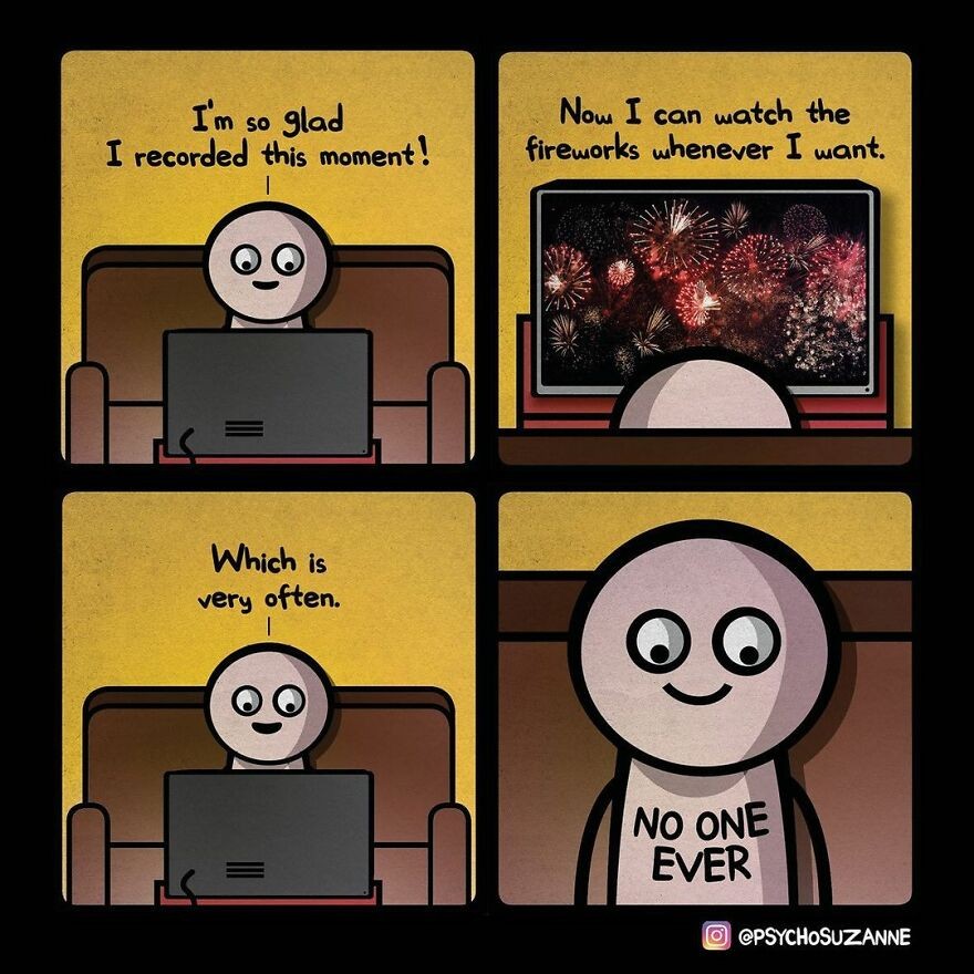 Taking photos of an event rather than being immersed in it has been shown to lead to poorer recall of the actual event—we get distracted in the process.