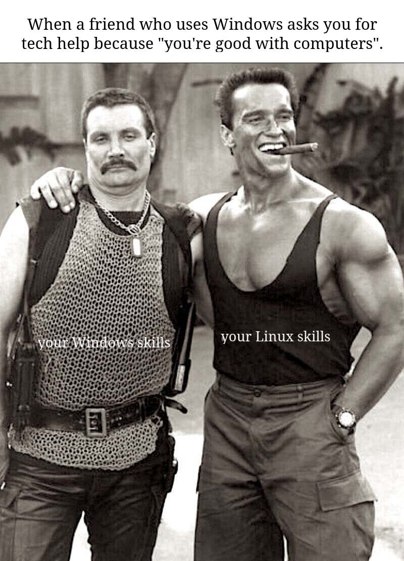 Veraven@sh.itjust.works to linuxmemes@lemmy.world · 13 minutes agoYou're good with computerssh.itjust.worksimagemessage-square1fedilinkarrow-up15arrow-down11