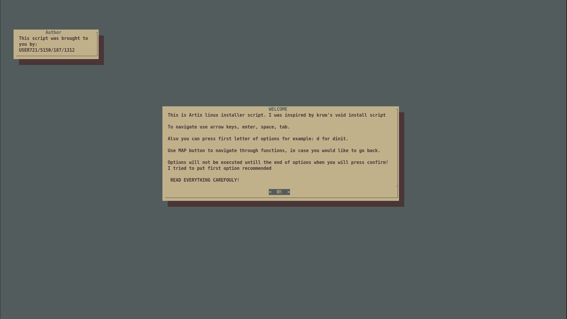 cm0002@lemmings.world to Linux@programming.dev · 13 hours agoTUI Artix Linux Install scriptplus-squarelemmy.mlimagemessage-square1fedilinkarrow-up121arrow-down11