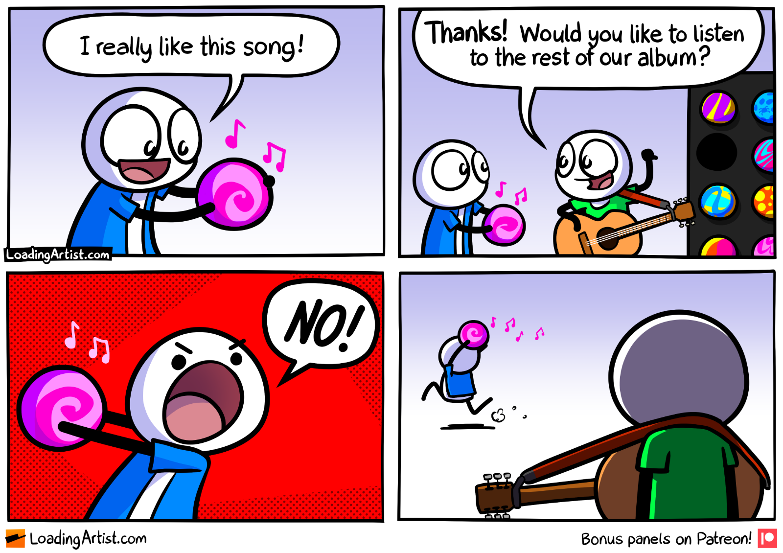 arrow-up14arrow-down1imageI really like this song!plus-squarelemmy.worldLoading Artist@lemmy.world to Comic Strips@lemmy.worldEnglish · 1 year agomessage-square10fedilink