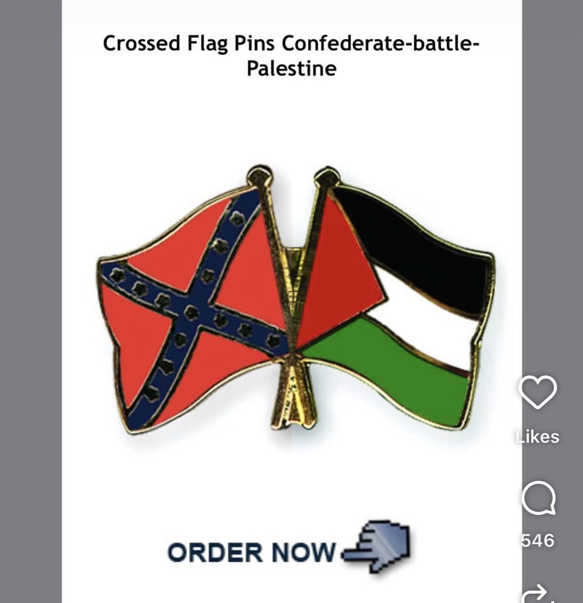 in other words, while the Confederate flag is an explicit expression of racism, the Palestinian flag is absolutely not.